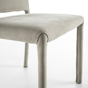 Neue, weiche Version des Stuhls. Der Metallrahmen ist gepolstert, um Komfort und Weichheit zu gewährleisten. Vollständig mit Leder bezogen, mit sichtbaren Nähten.