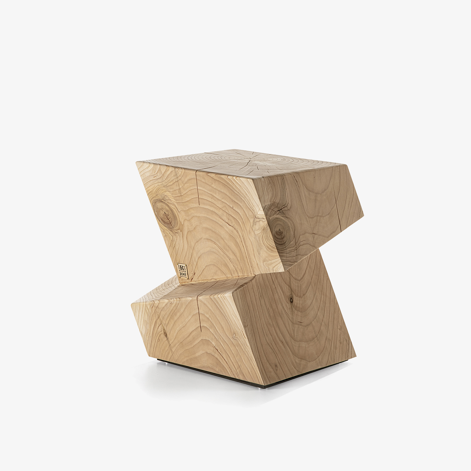 Hocker aus einem einzigen massiven Block duftendes Zedernholzes gewonnen, deren Form ein Tribut an die kubischen Häuser des holländischen Architekten Piet Blom ist. Bei dem Barhocker dient der untere Teil als Fußstütze.