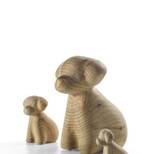 Einrichtungszubehör aus massivem, duftendem Zedernholz, aus einem einzigen Block gefertigt, dessen skulpturales Design von einer Malteser-Hunderasse inspiriert ist.