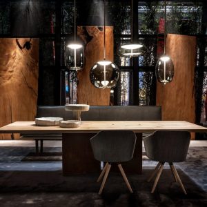 Evocative atmospheres, new designs and cosy spaces highlight the new Riva1920 collection with handmade products in solidwood. Let colours, veins and scent of nature involve you.