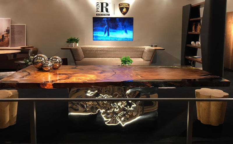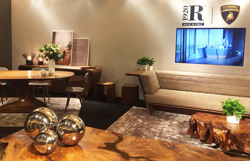 A wide space is dedicated to the Authentic Living collection, created in collaboration with Automobili Lamborghini and designed by Karim Rashid.