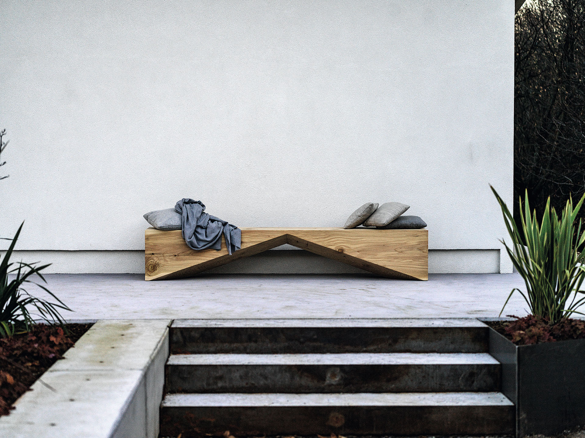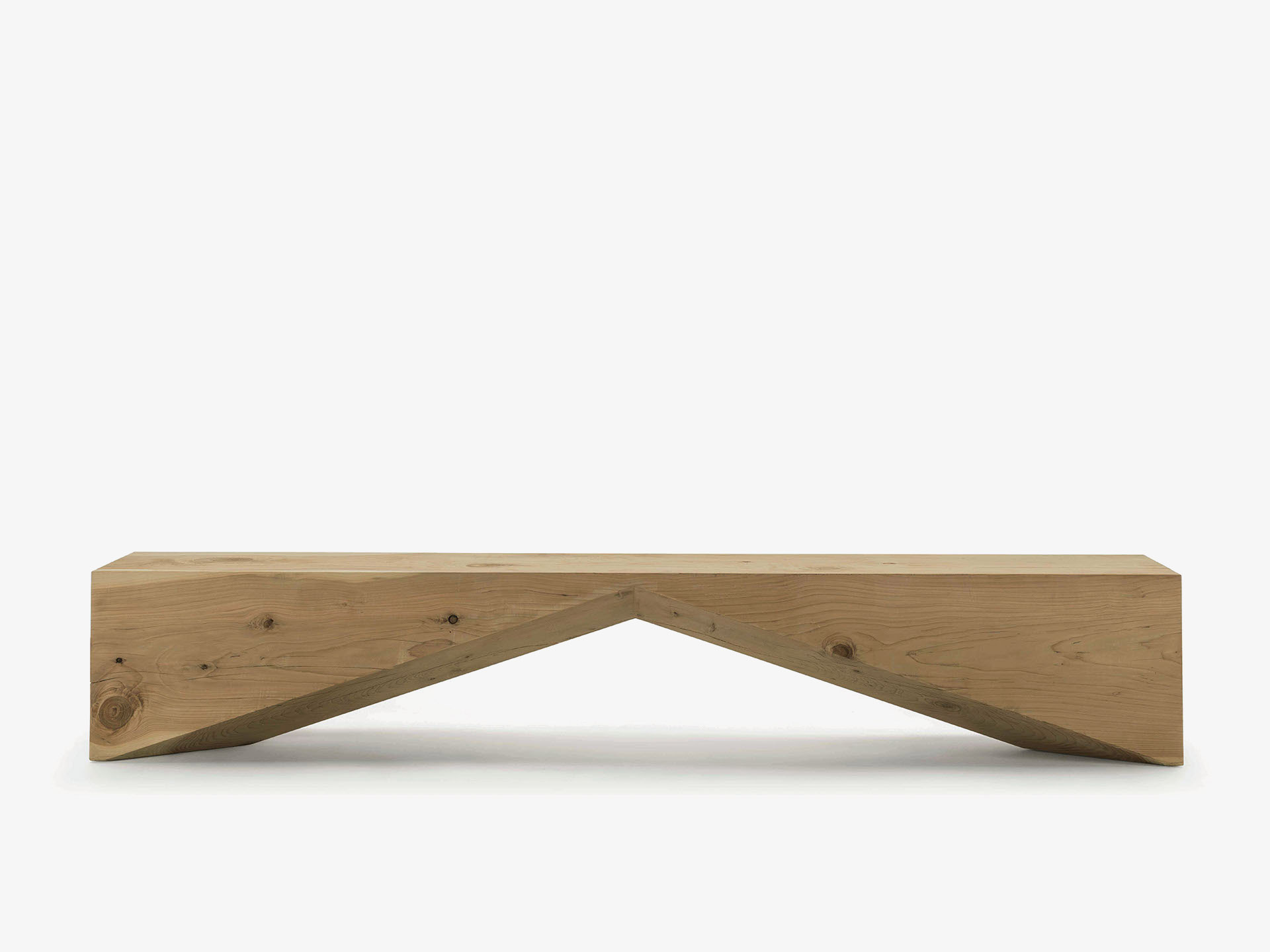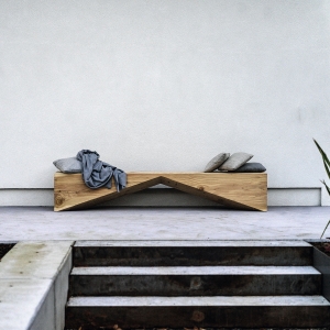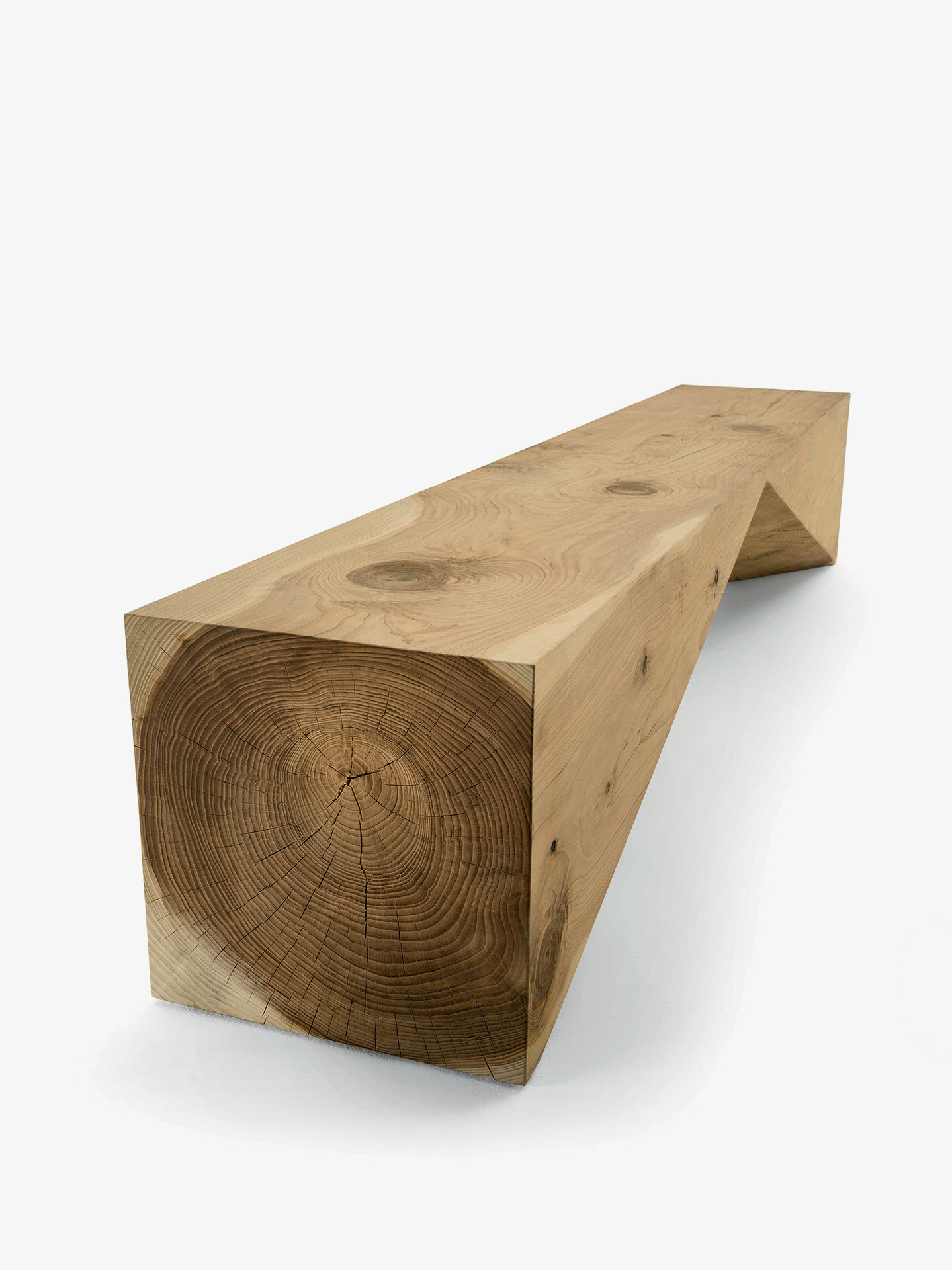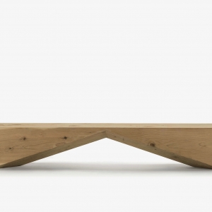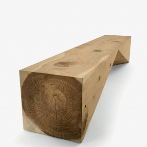 Panca in legno massello di cedro profumato lavorato da un blocco unico, che si caratterizza per un design essenziale e geometrico.
