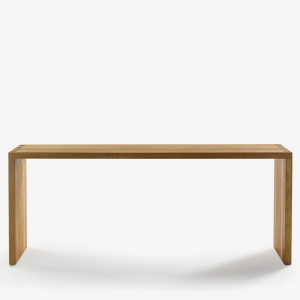 Console interamente realizzata in legno massello a liste incollate con lati squadrati, caratterizzata da un incastro a coda di rondine tra top e base.