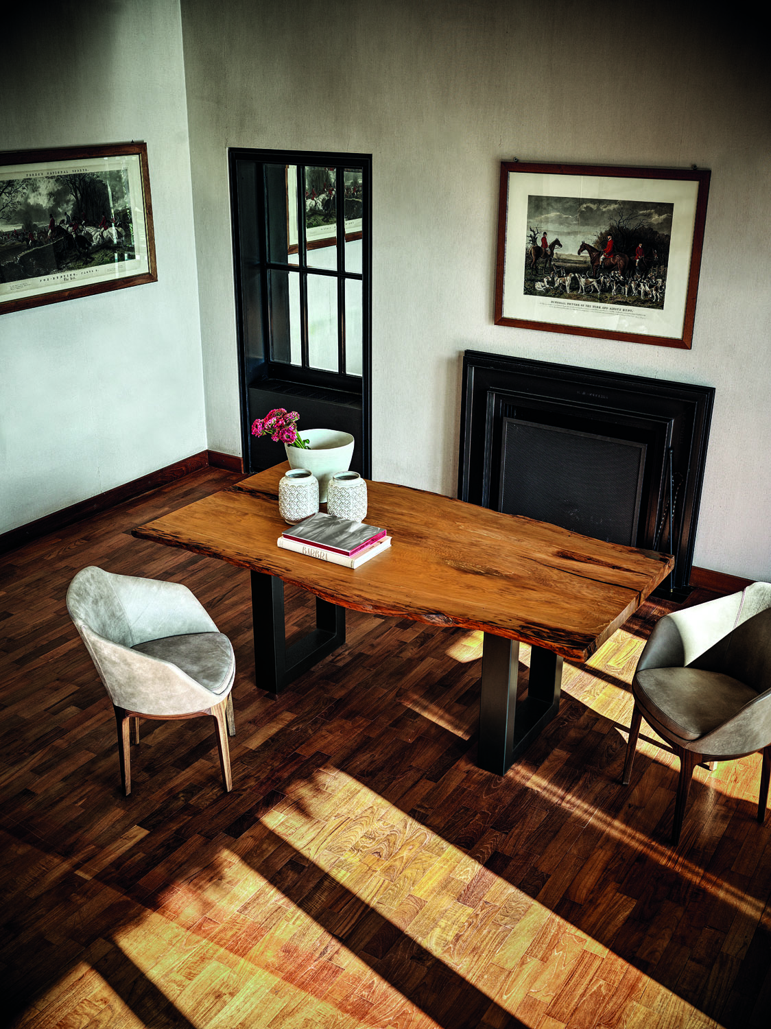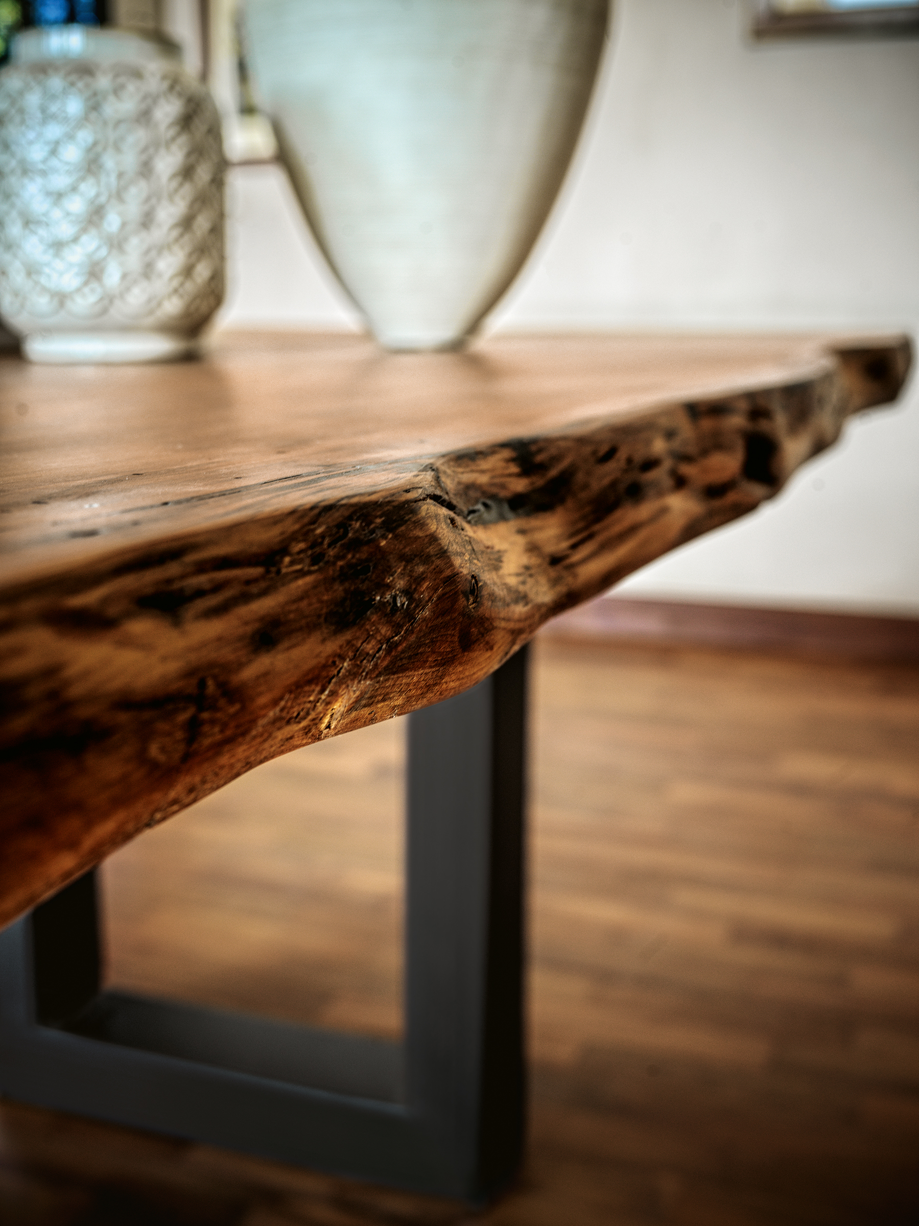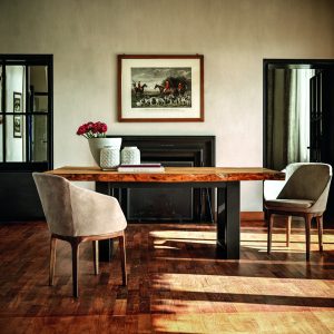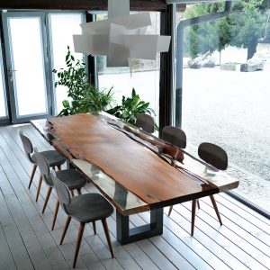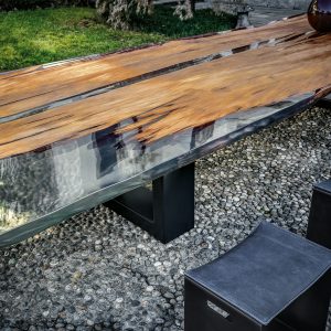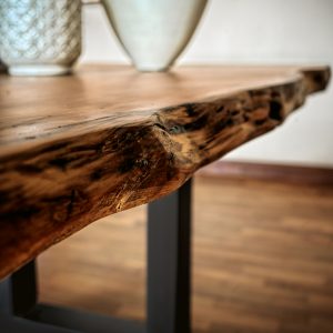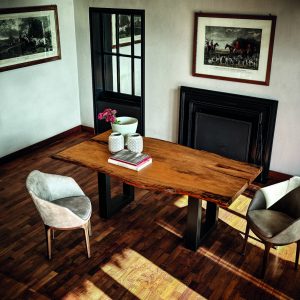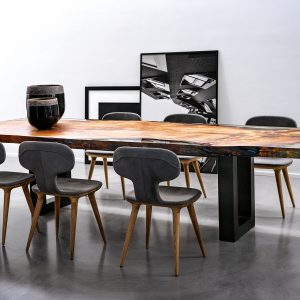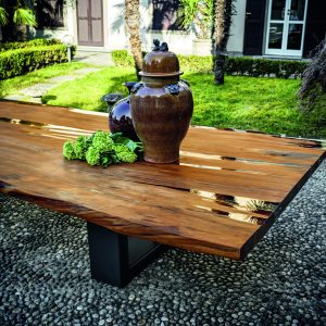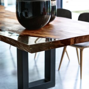 Tavolo realizzato con top in massello di Kauri, abbinato ad una base in ferro con sezione squadrata.