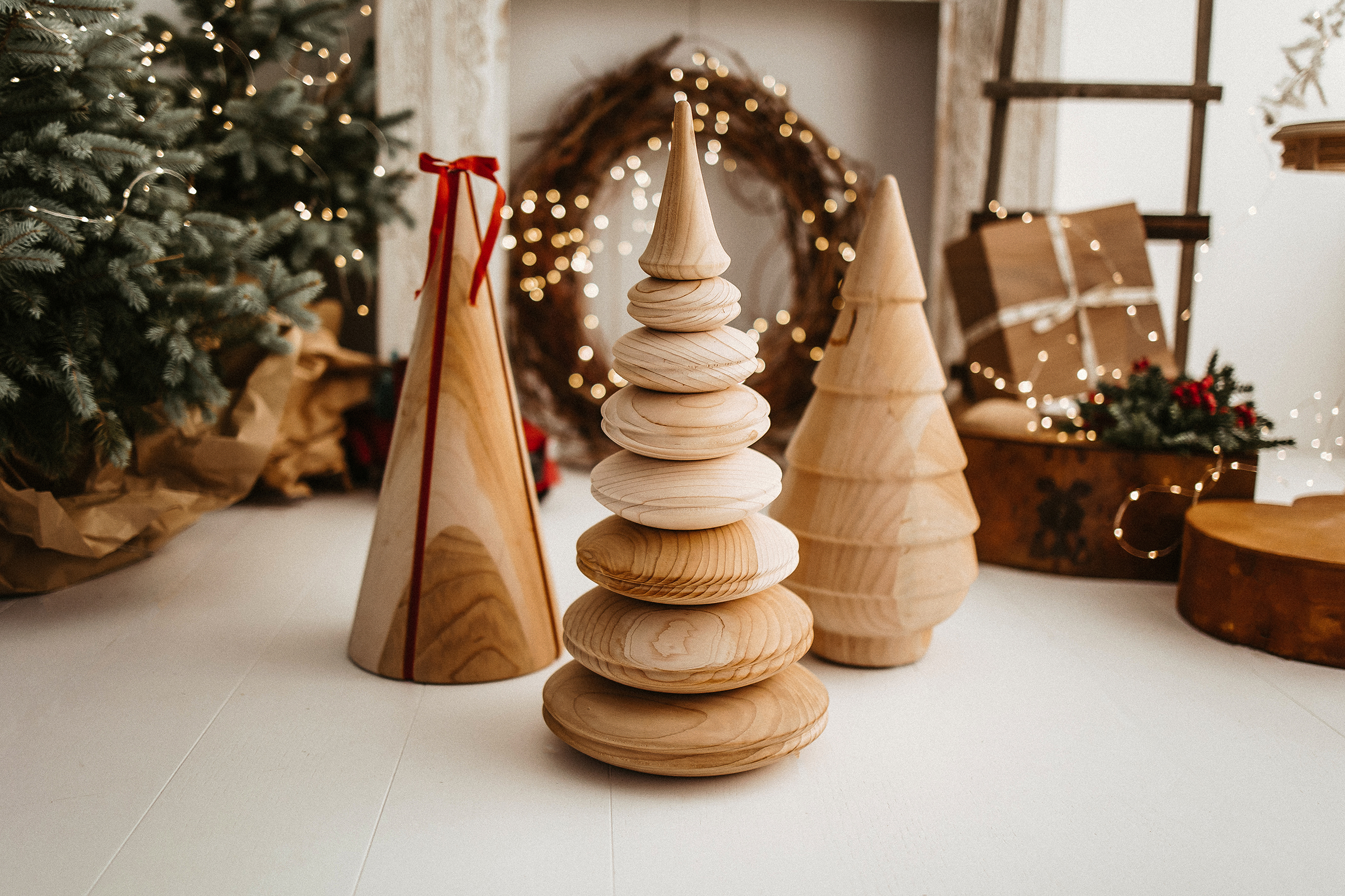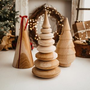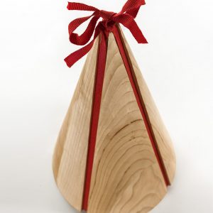 Espressione dell’unione di due simboli del Natale, il tradizionale albero e il pacchetto regalo. Caratterizzato da una forma conica avvolta da una corda rossa, che crea un effetto visivo come un nastro che decora un pacchetto.