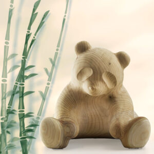 Мебельный аксессуар из массива ароматного кедра, изготовленный из цельного бруска, скульптурный дизайн которого вдохновлен Пандой.